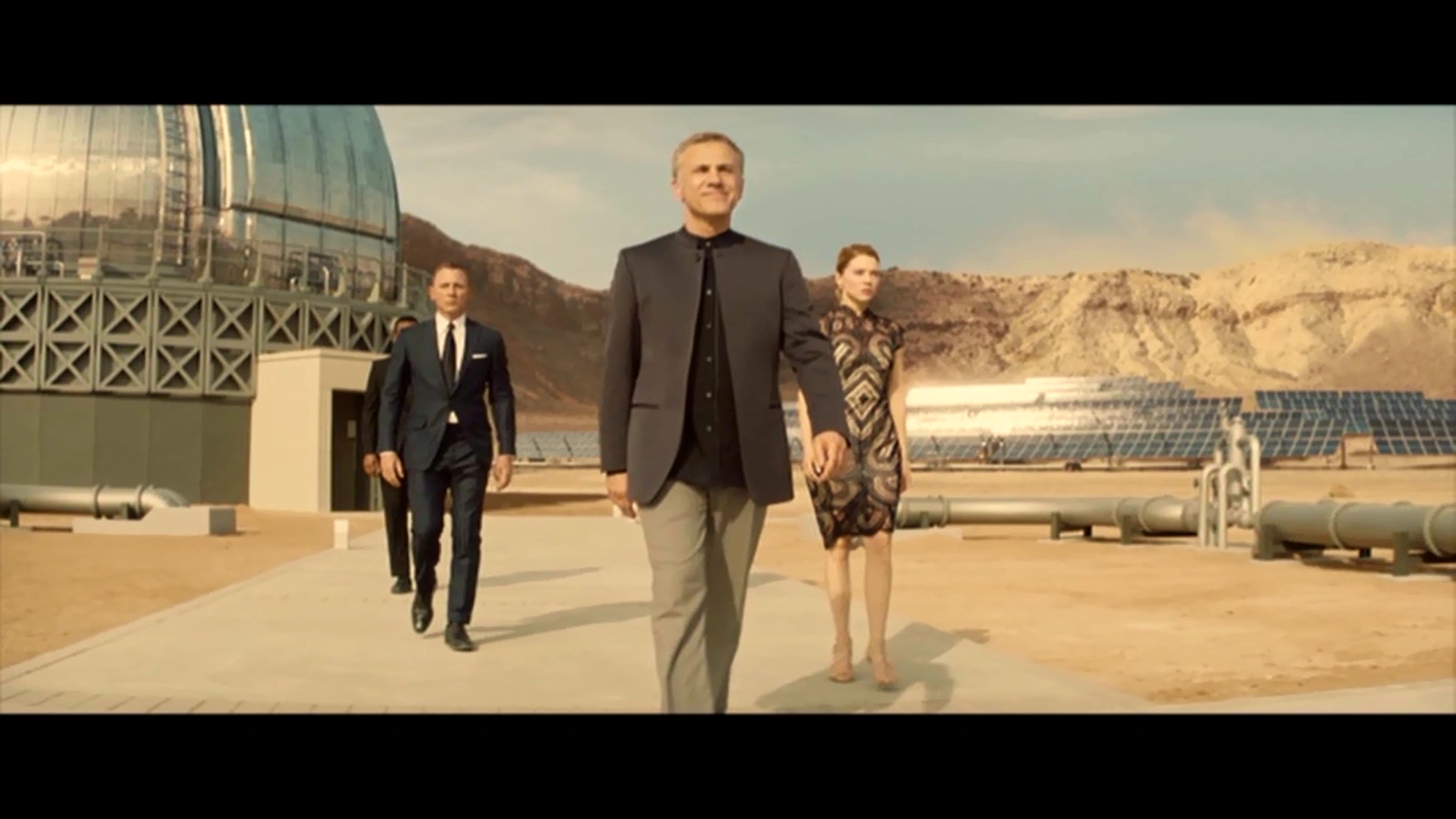 In der marokkanischen Wüste, wo Blofeld ein, um einen Meteoritenkrater herum aufgebautes, gewaltiges Hauptquartier und Technologiezentrum besitzt, kommt es zur nächsten Begegnung der beiden “Quasi-Brüder“, wo er dem britischen Agenten frei und ungerührt von der Ermordung des eigenen Vaters erzählt, wie er den Tod von Bonds großer Liebe Vesper Lynd in Auftrag gegeben hat und von allen anderen Steinen, die er ihm von Fern in den Weg gelegt hat. Bei dieser Gelegenheit offenbart er Bond auch sein großes “Pièce de résistance“.