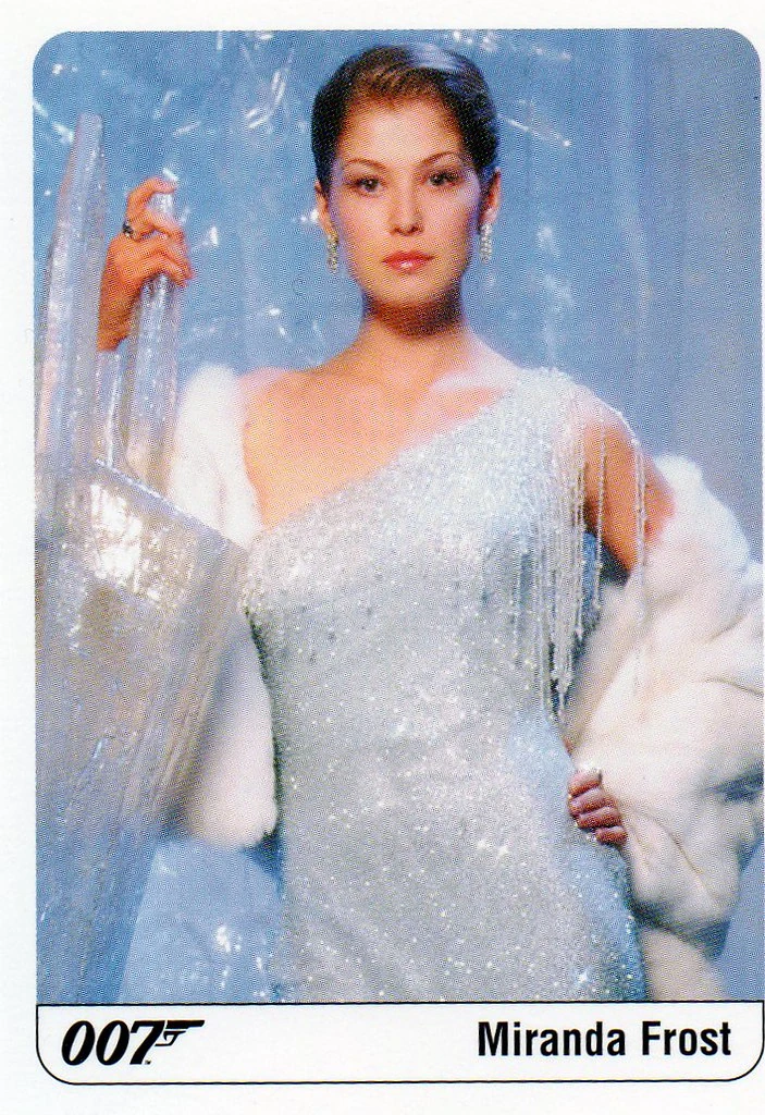 Nachdem Bond der Einladung Gustav Graves' zu dessen Eispalast nach Island folgt, um der dortigen Präsentation von Graves Geheimprojekt beizuwohnen, wird er von Frost empfangen. Sie führt ihn herum und zeigt ihm sein Zimmer für die Zeit seines Aufenthalts. Mirandas extremes, jedoch nie überheblich wirkendes, Selbstbewusstsein kommt hier auch durch die Wahl ihrer Kleidung zur Geltung - seien es edle Pelzmäntel oder ihr hochwertiges, offenbar diamantenbesetztes Abendkleid, das Schulter und Rücken auspart und so bewusst allen anderen Gästen die Show stiehlt.