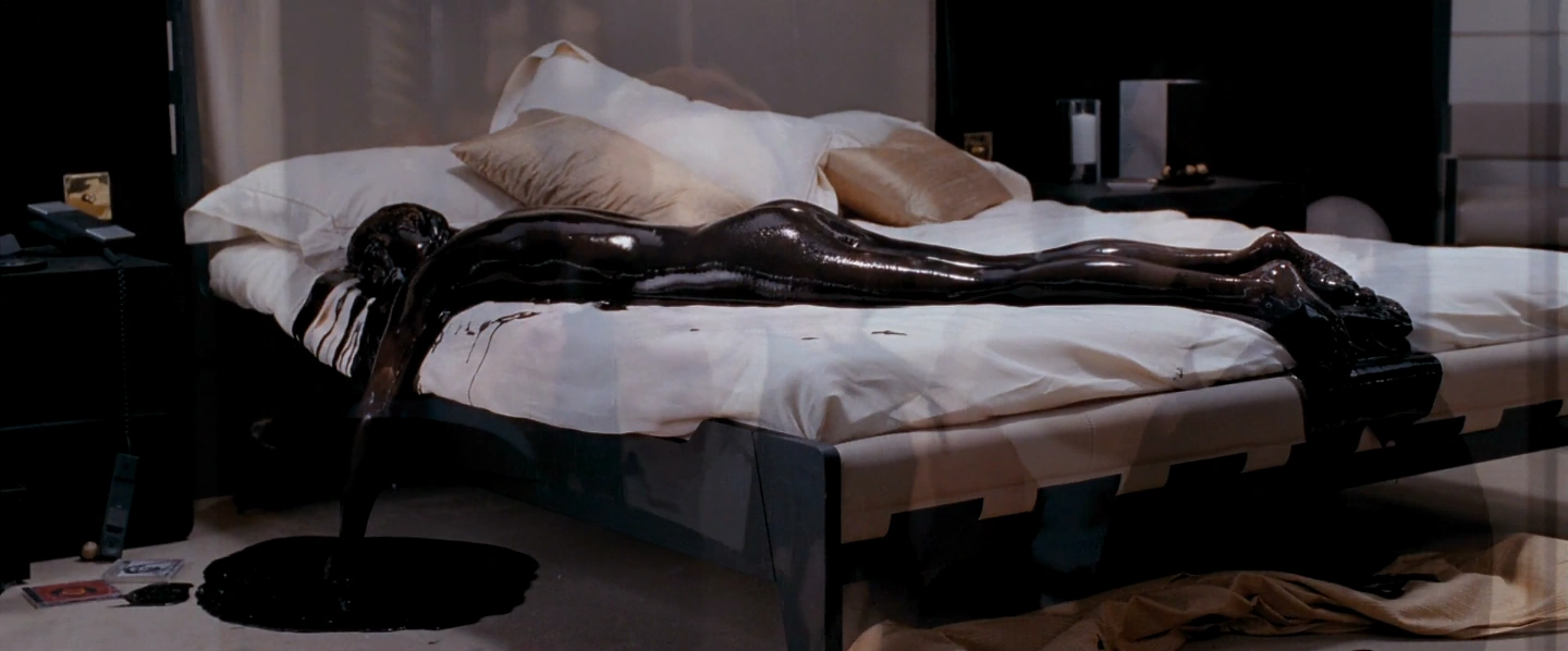 Strawberry Fields Tod in Ein Quantum Trost, 2008 - Inszeniert als Hommage an den "Golden-Girl-Tod" in Goldfinger, 1964.