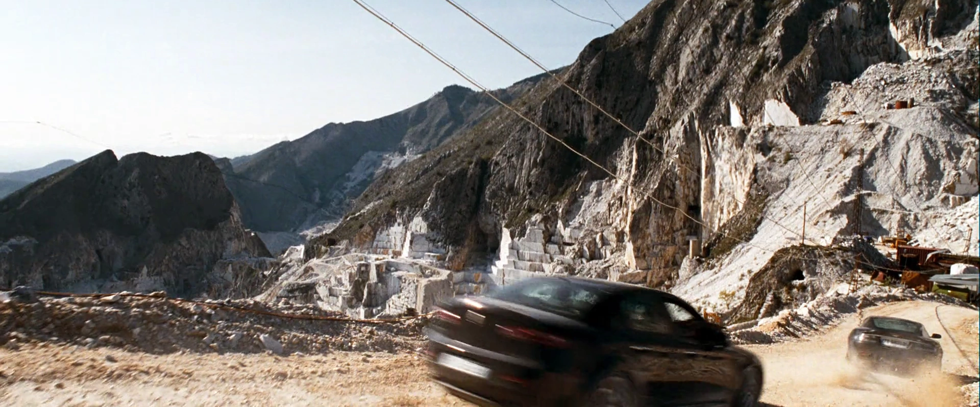 Quantum of Solace est le dernier des trois films compris dans l'accord de placement de produit que la production a conclu avec Ford Motor à l'époque de Meurs un autre jour (2002). Bien que Ford ait vendu plus de 90 % de la société Aston Martin en 2007, il a été convenu de faire réapparaître l'Aston Martin DBS V12 dans la séquence de pré-générique de ce film. Le réalisateur de la seconde équipe, Dan Bradley, avait originellement proposé que les poursuivants de Bond conduisent des Ford GT mais celles-ci ont finalement été remplacées par des Alfa Romeo. Dix voitures ont été mises à la disposition de la production par Aston Martin. Six d'entre elles étaient nécessaires pour les gros plans et la promotion et ont servi au tournage sans être endommagées et les quatre autres ont été utilisées pour les effets spéciaux et les cascades. L'une d'entre elles a été achetée par un fan.