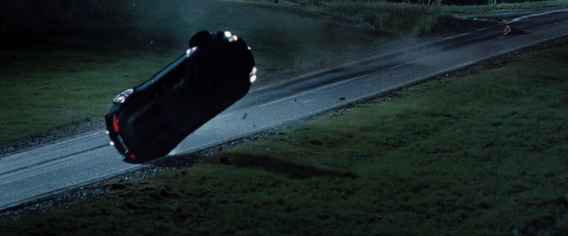 La scène de l'accident de l'Aston Martin comme elle est montrée dans le film.