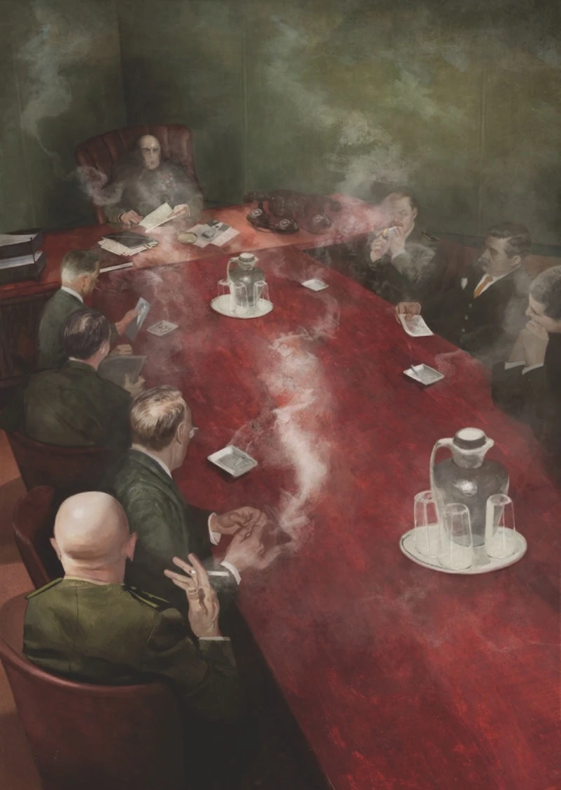 Les chefs des services de renseignements soviétiques préparant leur coup d'état contre James Bond.