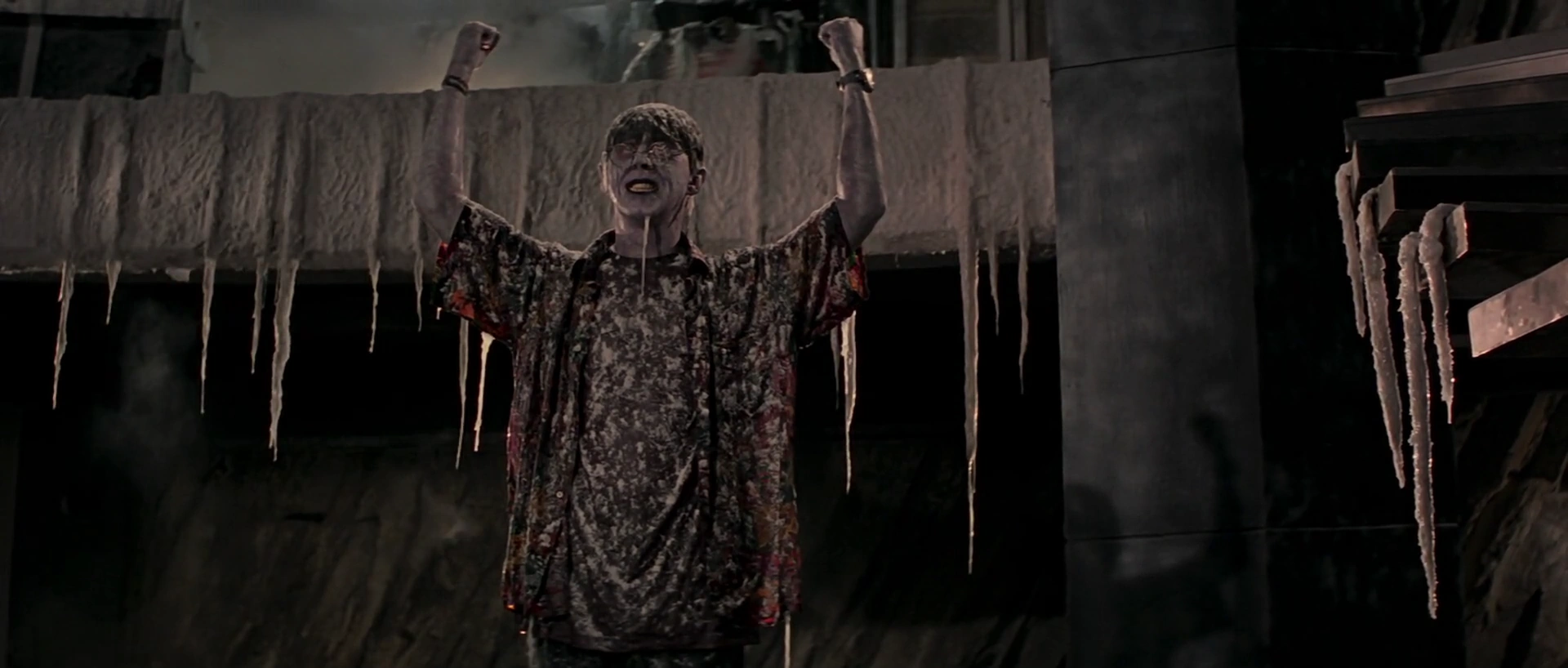 Alan Cumming a révèle qu'une maquette de son corps a été conçue pour la scène où Boris est congelé par l'azote liquide mais qu'il a lui-même dû jouer les scènes de transition, ce qui lui a valu d'être brûlé par l'azote utilisé pour créer les effets de fumée sur le plateau. "Lorsque j'ai tourné, j'avais une sangle autour de moi qui me retenait pour ne pas que je puisse bouger lorsque tout le matériel a commencé à tomber", a confié l'acteur. "Il y avait de gros morceaux de glace liquide, de l'azote liquide au fond du truc, et ils ont atterri sur ma tête et je ne pouvais plus bouger. J'ai commencé à me brûler la tête. Des pompiers se sont précipités sur le plateau et m'ont arraché les cheveux"[1].