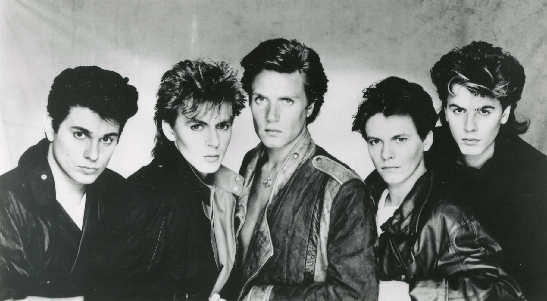 Duran Duran en 1983. De gauche à droite : Roger Taylor (batterie), Nick Rhodes (claviers), Simon Le Bon (chant), Andy Taylor (guitare) et John Taylor (basse).