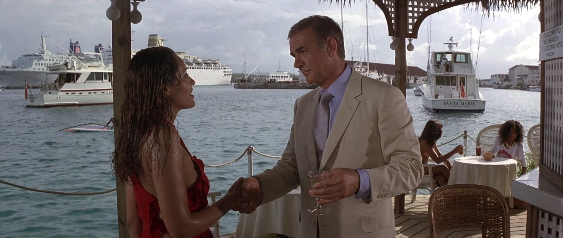 Plus tard, à Nassau, aux Bahamas, Bond voit Blush en train de faire du ski nautique. Rencontrant formellement 007, la criminelle le séduit et lui propose de l'accompagner pour découvrir les plus beaux endroits pour pêcher. Après avoir eu des ébats passionnés dans le bateau de l'agent du SPECTRE, ils commencent leur visite sous-marine et Blush tente de tuer son partenaire sexuel avec des requins télécommandés qu'elle attire vers lui grâce à une balise placée sur son réservoir à oxygène. Toutefois, alors qu'elle se divertit sur une piste de danse du port, Numéro 12 est à la fois choquée et frustrée de voir James en compagnie d'une pêcheuse et comprend donc qu'elle a échoué. Sans perdre une minute, l'assassin tente de faire exploser le couple avec du C4 alors qu'il couche à son hôtel ; Bond n'est sauvé que parce qu'il se trouvait dans la chambre de la fille au lieu de la sienne.
