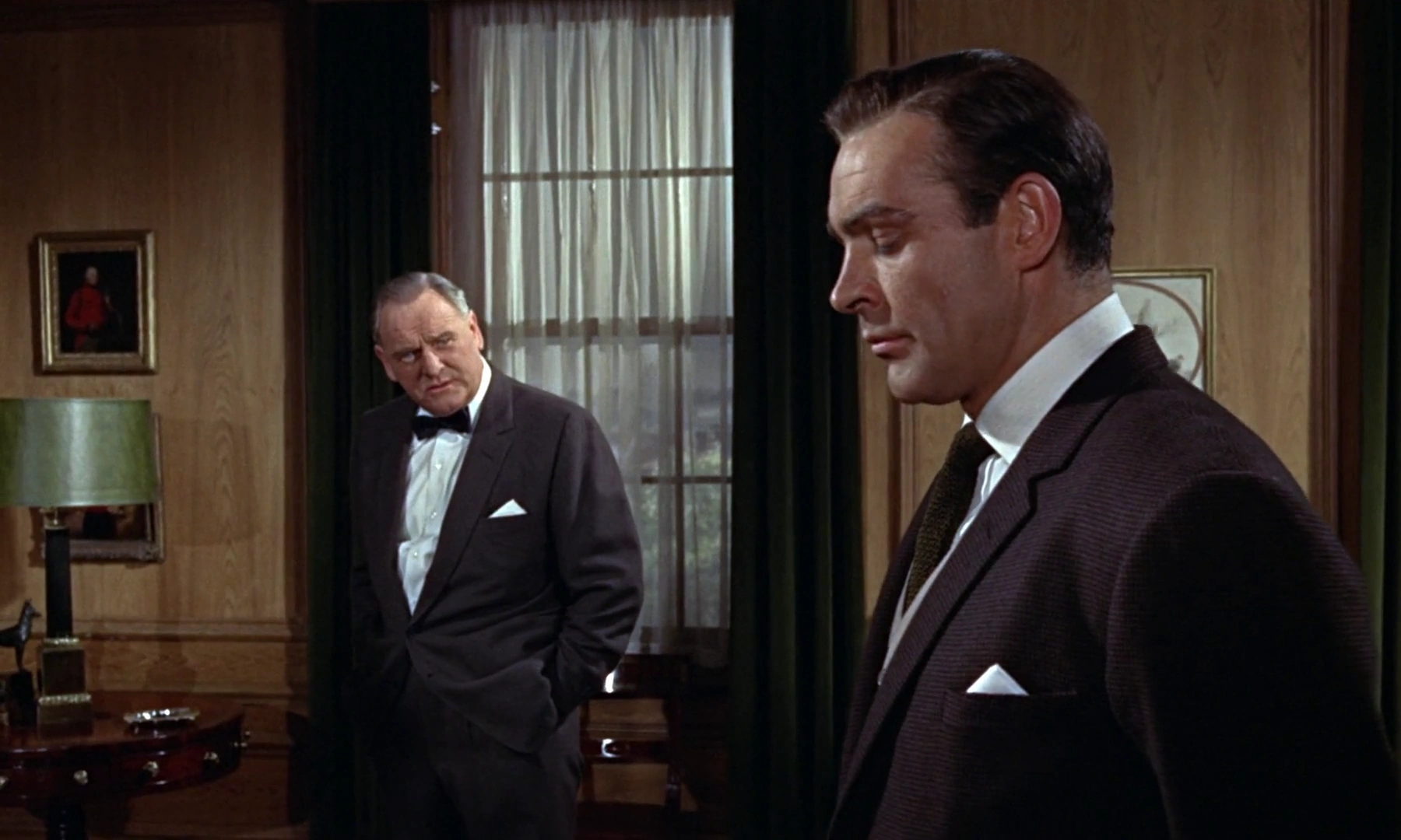 M interrogeant Bond sur les circonstances de la mort de Jill Masterson.