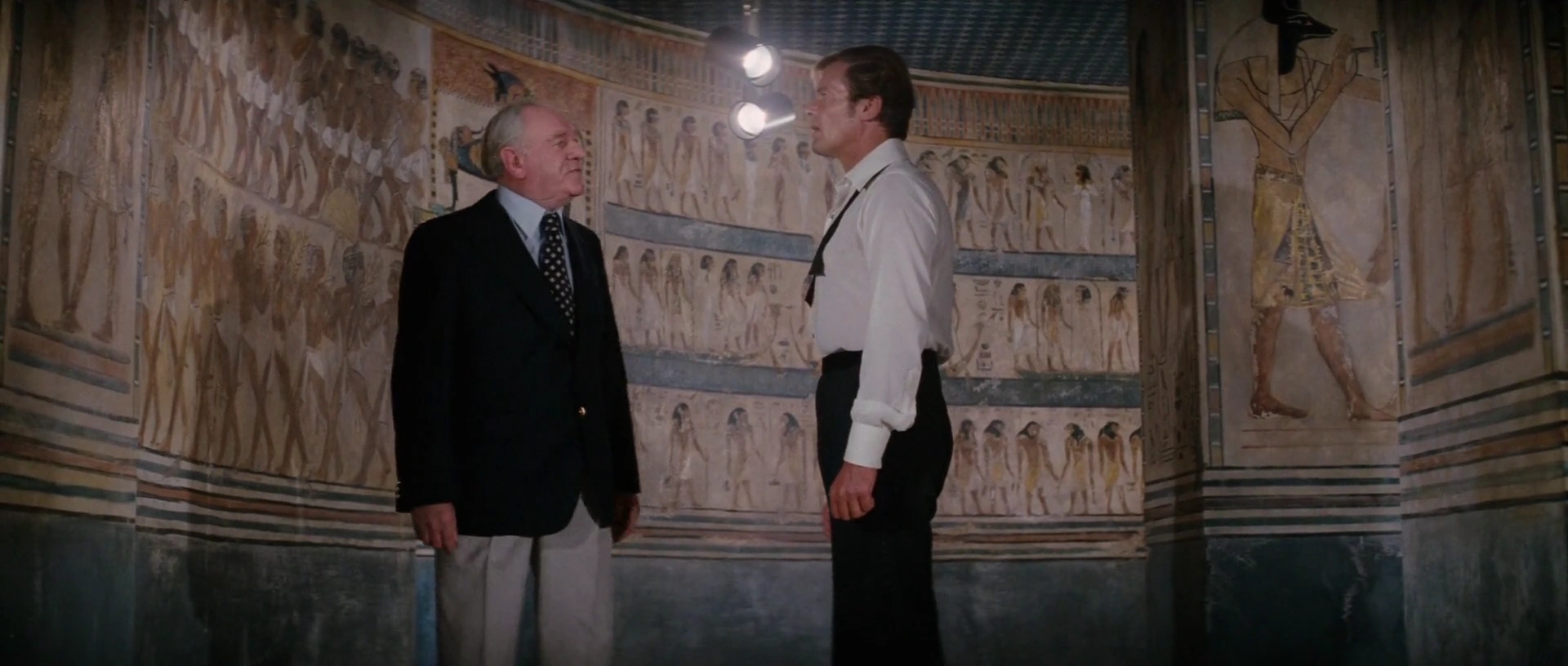 M retrouvant Bond dans le temple d'Abou Simbel.