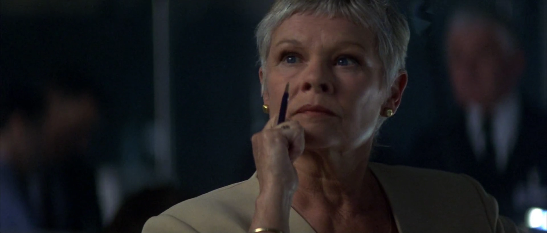 Cette version de M apparaît dans l'ère Pierce Brosnan, étant la protagoniste dominante dans GoldenEye (1995), Demain ne meurt jamais (1997) et Meurs un autre jour (2002) et la protagoniste centrale dans Le monde ne suffit pas (1999). Elle a été interprétée par l'actrice britannique Judi Dench. Dans la version française, elle a été doublée par la regrettée Liliane Gaudet de GoldenEye à Le monde ne suffit pas, puis par Annie Bertin dans Meurs un autre jour, Gaudet ayant enregistré un doublage pour ce dernier film qui n'a finalement pas été conservé.