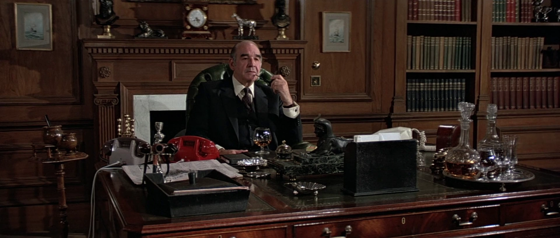 • Comme celui de Bernard Lee, le M de Robert Brown est souvent montré en train de fumer sa pipe.