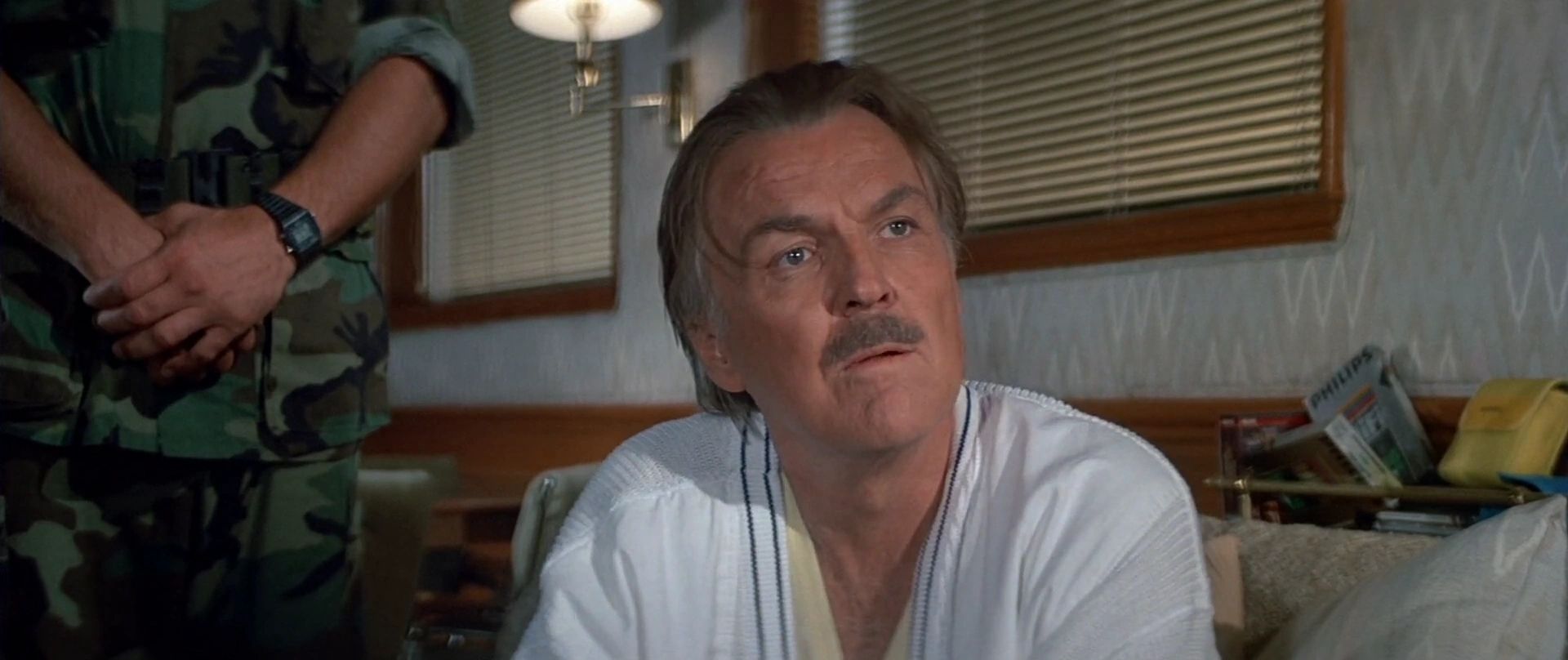 Plus tard, Bond apprend de Lupe que Krest est censé rencontrer Sanchez à bord du Wavekrest dans la ville d'Isthmus et ayant gagné la confiance du Colombien paranoïaque, le protagoniste le convainc que quelqu'un dans son entourage cherche à le faire tuer. Selon la ruse de Bond, Sanchez soupçonne Krest et interroge l'homme d'affaires nerveux au cours de leur entretien. Ce dernier tente de s'expliquer sur la disparition du magot de son patron mais passe plutôt pour le coupable du vol aux yeux du narcotrafiquant puisque la scène qu'il lui décrit semble trop invraisemblable.