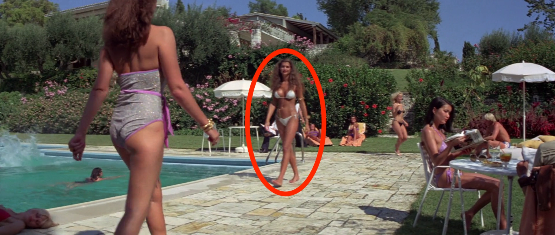Quelques temps après la sortie de Rien que pour vos yeux, il a été révélé qu'une des femmes figurant à la piscine d'Hector Gonzales, Caroline Cossey, était transgenre. Bien que l'équipe de production n'en était probablement pas au courant. Cette anecdote a attiré l'attention des tabloïds en 1991 après que Cossey ait été interviewée par la star de la radio américaine Howard Stern, qui avait souligné le fait que même les producteurs de James Bond avaient été trompés. Cossey était la première femme transsexuelle à poser pour le magazine Playboy[24] ainsi qu'une des premières femmes à exposer ainsi qu'à défendre sa transsexualité[25].