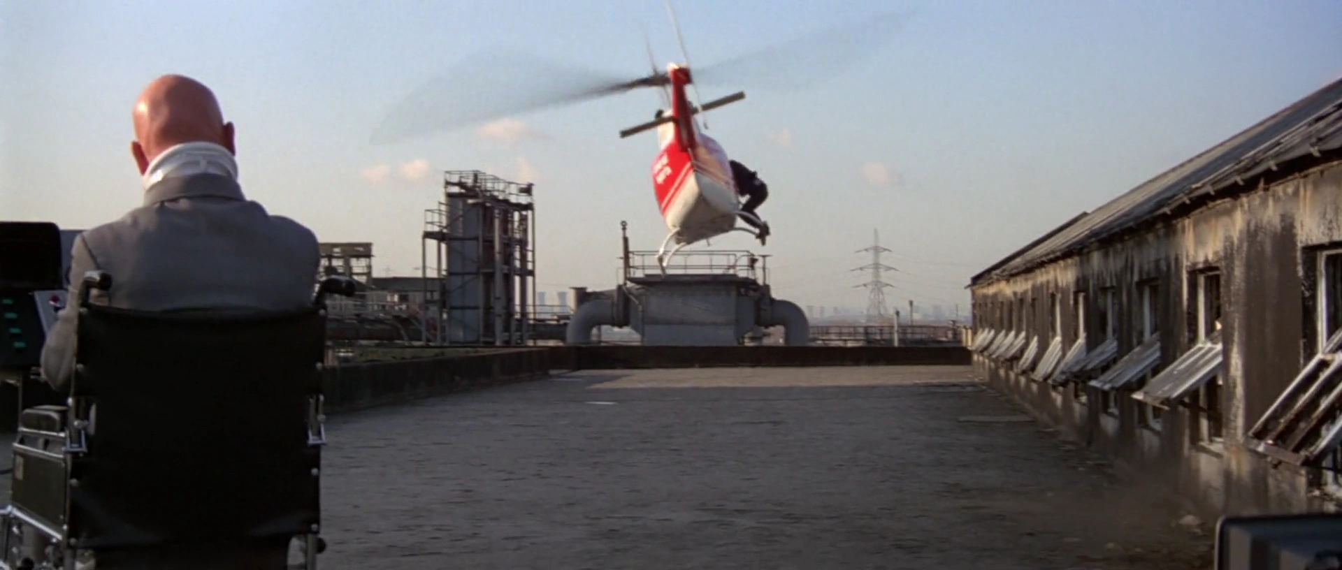 La scène du pré-générique où Blofeld télécommande l'hélicoptère de Bond comme elle montrée dans le film.