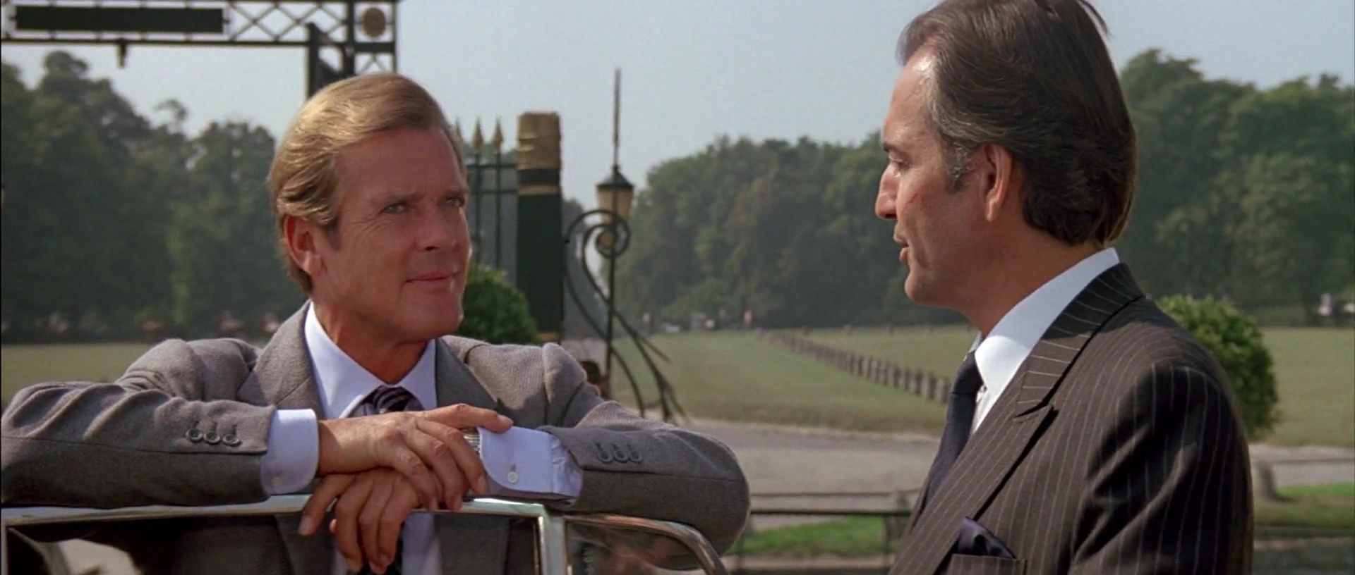 Scarpine rencontrant Bond au château de Chantilly.