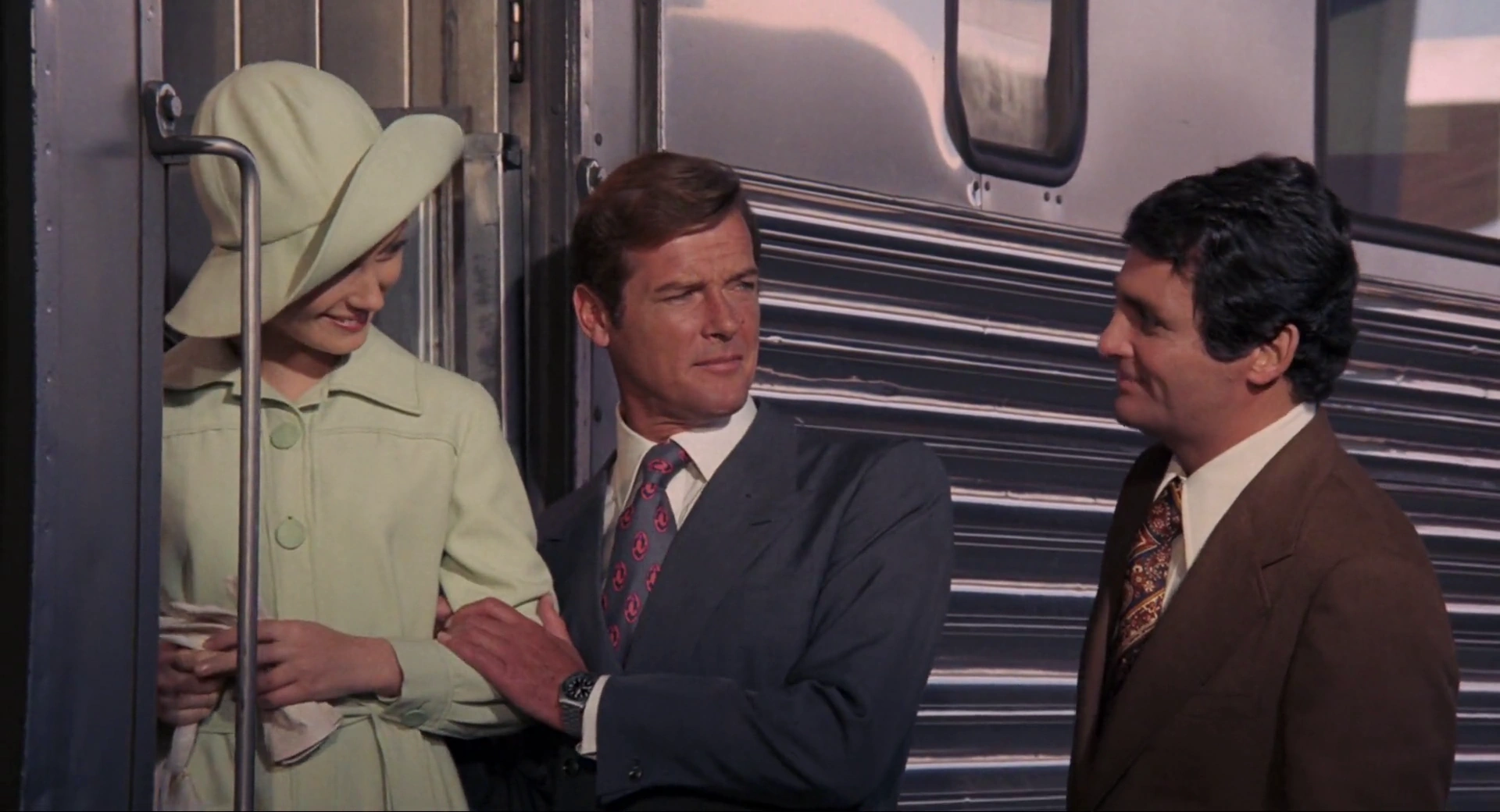 Suite à cela, Solitaire et Bond montent dans un train en partance pour l'Angleterre. Après avoir battu James à une partie de gin rami, la cartomancienne monte dans une couchette pour passer une nuit d'amour avec son sauveur. Cependant, Tee Hee, également à bord, entre subrepticement dans leur compartiment et la piège dans la couchette avant d'être défenestré par 007. Sans comprendre ce qui s'est passé, Solitaire est libérée par Bond en croyant qu'il s'agit d'une mauvaise blague de l'espion tombeur.