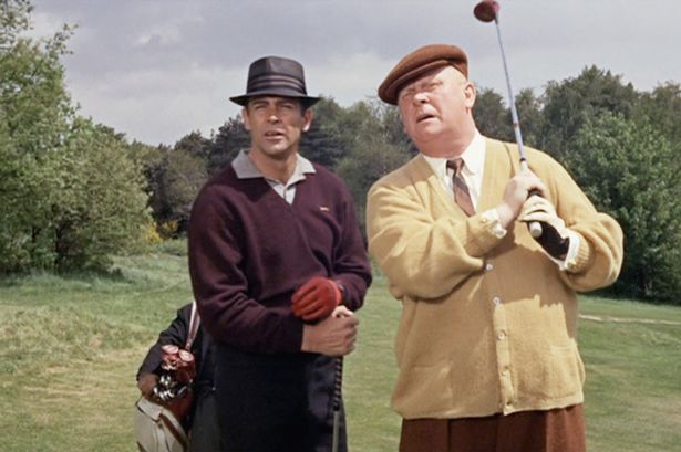 Goldfinger playing golf against James Bond