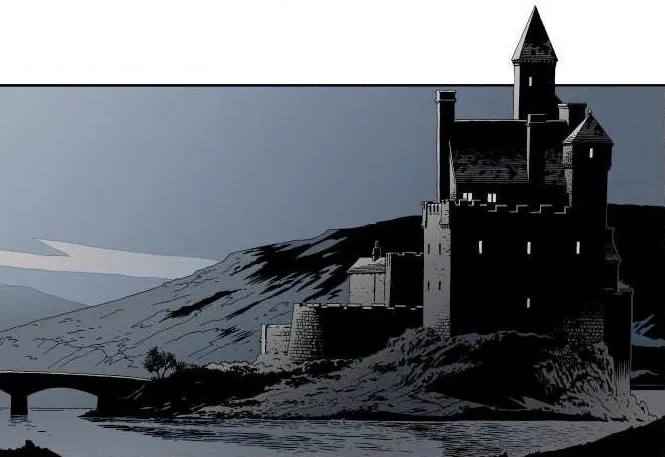 Promotional artwork of Castle Hellebore as depicted by artist Kev Walker for SilverFin (2006).