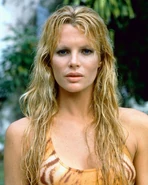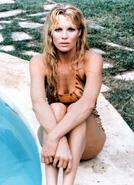 In the non-Eon film Never Say Never Again, Domino Petachi is structured after Domino Derval, but this time she is played by Kim Basinger. The character is still called Domino, but now it is no longer just a nickname, but her last name has become Petachi, the reason for this change is unknown. Although somewhat less assertive than the Thunderball version - being clearly terrified when she is nearly sold off to a group of Arabs, despite this, she kills Largo and avenges her brother. The film ends with Bond retiring from the service to be with her.