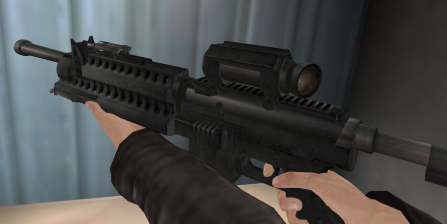 The "AR4 Commando" assault rifle, as seen in the 2004 video game GoldenEye: Rogue Agent.