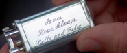 - "What's that? "James, love always, Della and Felix.""