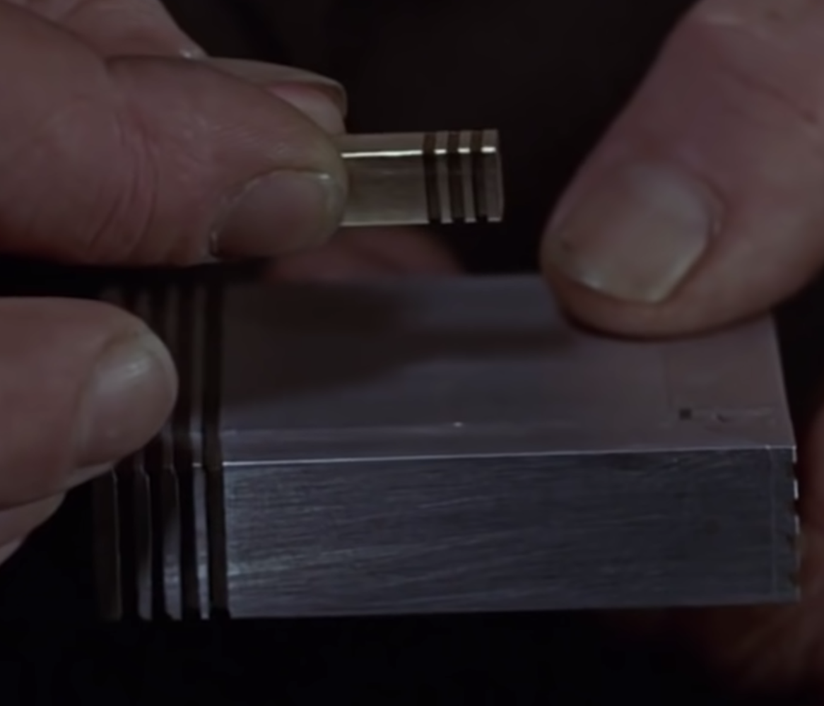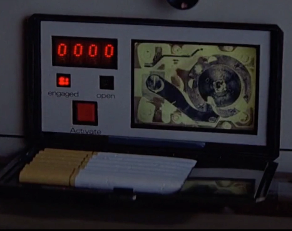 Safe-Cracking Device - A safe-cracking device that is concealed within a normal looking cigarette case. It uses X-Ray technology to see the inner workings of the safe's locking mechanism. Bond uses it to break into the safe in Drax's office.