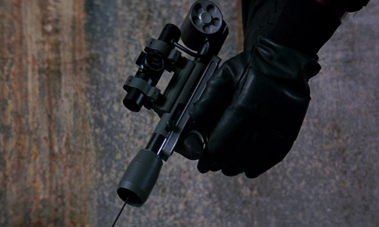 Ski Pole Rifle - A specially designed ski pole which is modified to fire .30 caliber rounds from a four shot clip in the handle. Twisting the top of the pole to reveals the trigger. Bond uses the weapon to shoot one of his Soviet pursuers, Sergei Barsov, in the pre-title sequence.