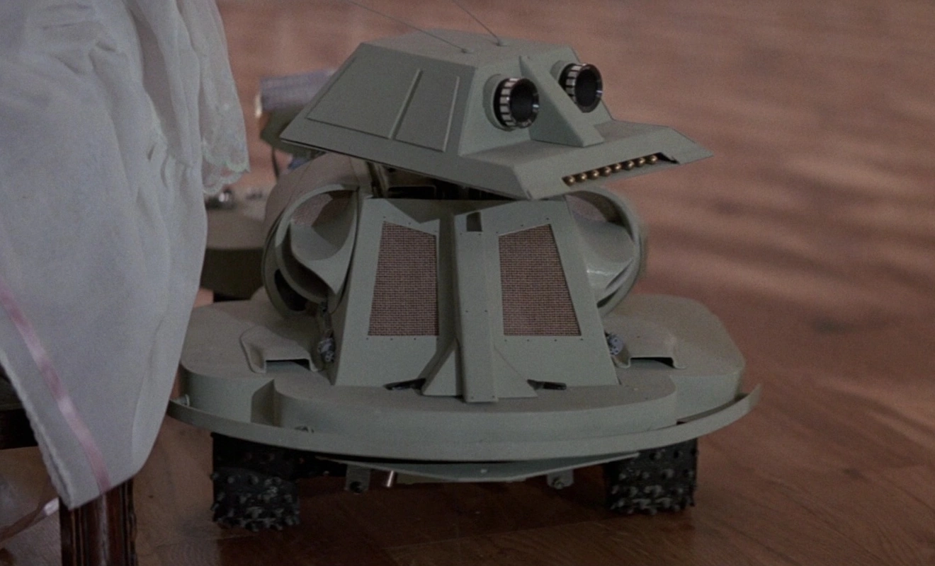 Snooper - This remotely controlled robot uses video cameras and microphones to survey locations that are inaccessible to humans, or to operate stealth surveillance missions. Snooper is only used at the end of the film where Q explores Stacey Suttons house looking for Bond and it eventually him and Stacey showering together which shocked and horrified Q and When Bond notices it, he quickly tosses a towel over it.