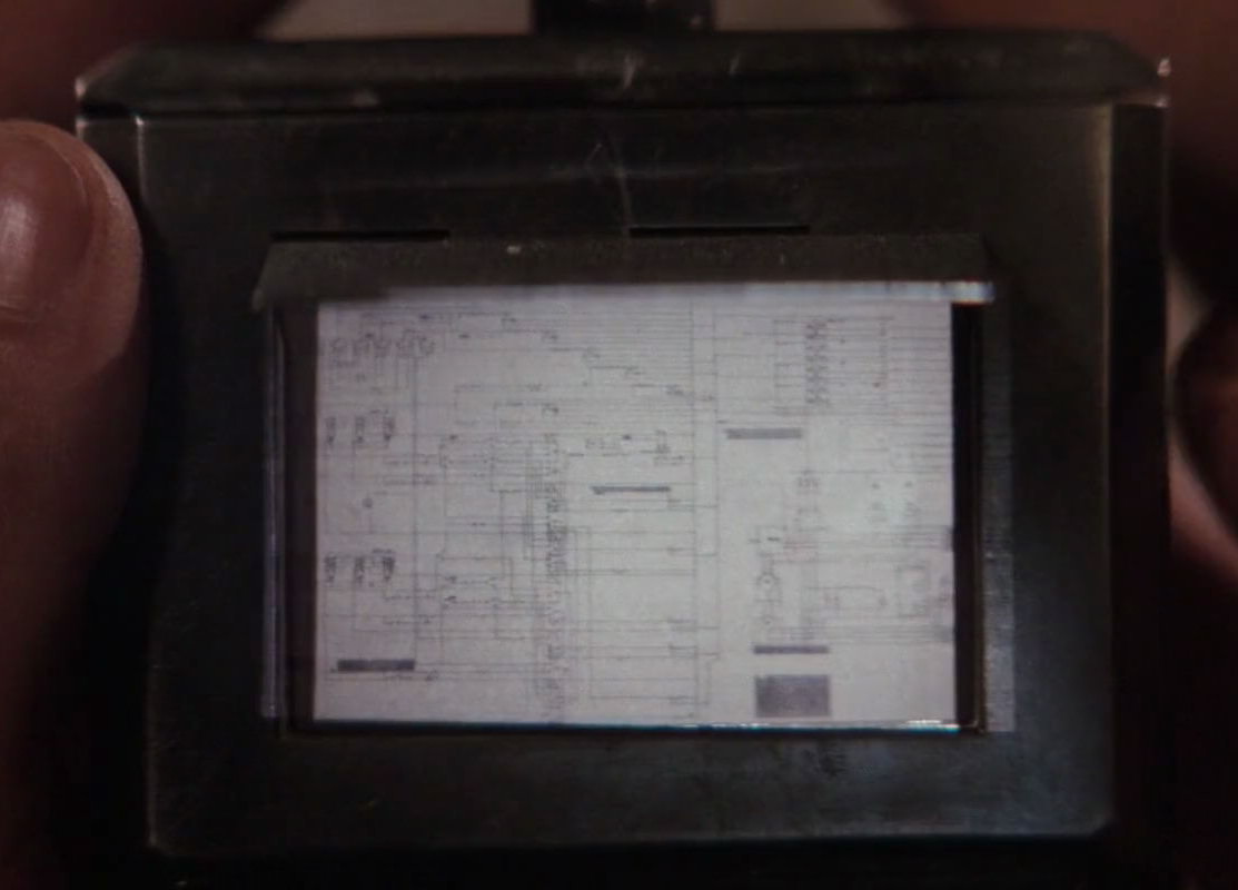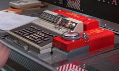 Identigraph Machine - An early computer-like device to assemble a phantom photo of a person by selecting characteristics from a variety of lists including hair color, hair style, nose form, style of eyeglasses etc. Located in MI6 headquarters and used by Bond and Q to put together an image of Locque.