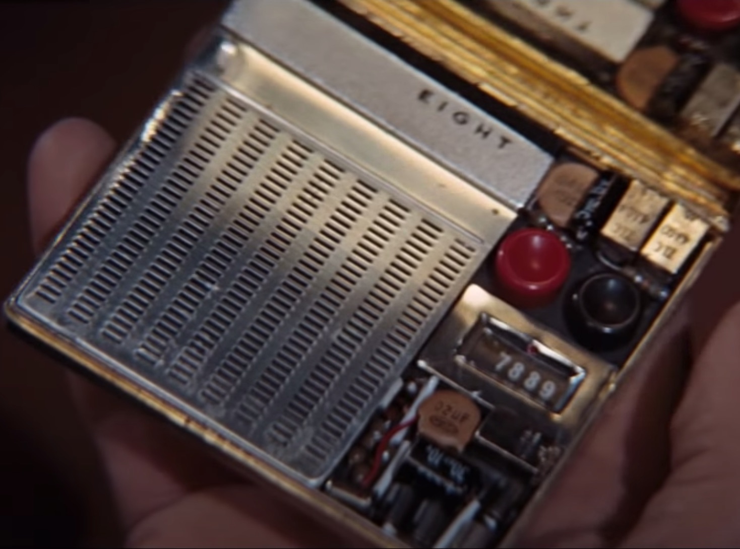 Cigarette Case Remote - A remote control device disguised as a cigarette case. The device allows access to SPECTRE's Paris conference room, concealed in the 'Centre international d'assistance aux personnes déplacées' ('The International Brotherhood for the Assistance of Stateless Persons').