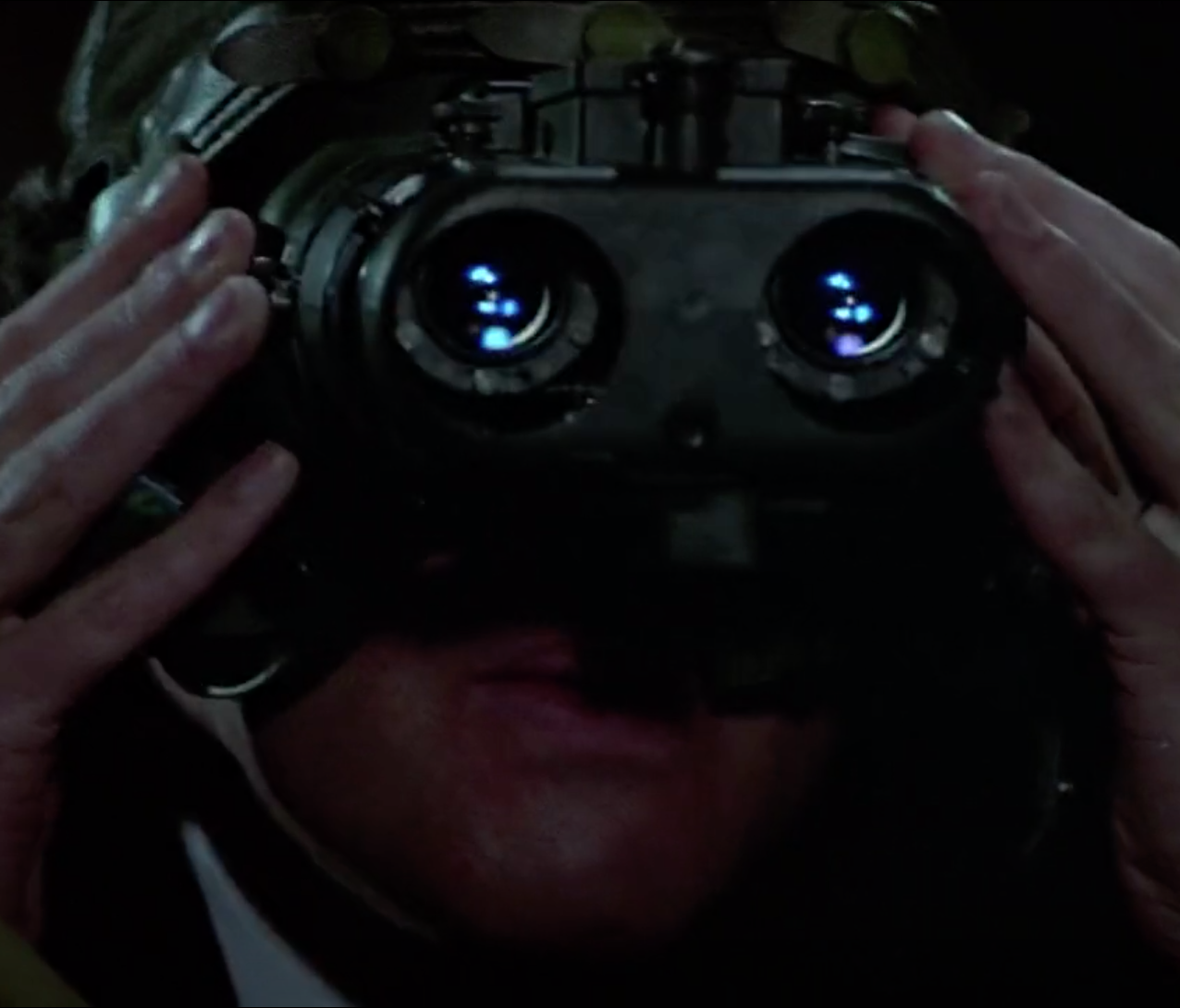 Night Vision Goggles - Saunders uses a pair of night vision goggles during the supposed defection of General Koskov. Using them he spots Koskov leaving the Opera House and identifies Kara Milovy - the girl with the cello - as the sniper supposedly sent to kill him.