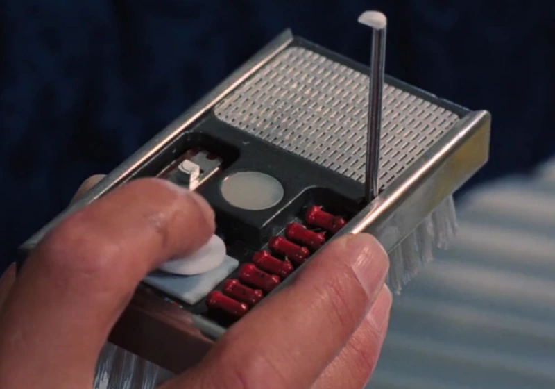 Bug Detector - Bond uses a handheld device that can sweep a room for electronic microphones. It can also be used to transmit messages in morse code.