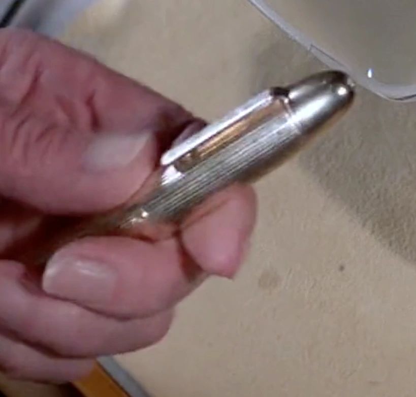 Mont Blanc Fountain Pen - An 18 carat gold fountain pen which contains a mixture of Nitric and Hydrochloric acids for dissolving metals. This feature Bond uses to escape from his cell in Kamal Khan’s palace. The top contains an earpiece that works in conjunction with a bug planted in the false Fabergé egg.