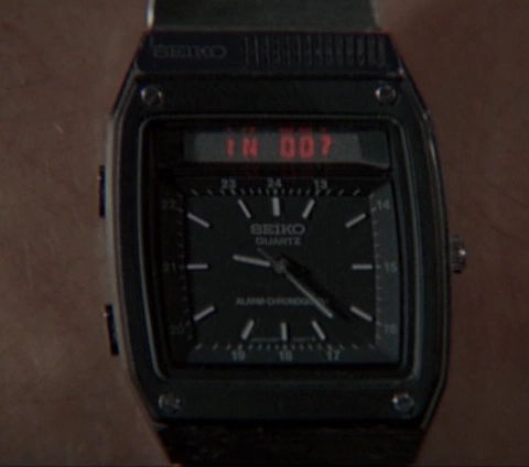 TV Wristwatch - A modified Liquid Crystal TV Seiko T001-5019 wristwatch. Receives moving images over the air and displays them on the watch's color LCD panel. Bond uses the watch to admire one of Q’s female assistants and later uses it to pursue Kamal Khan.