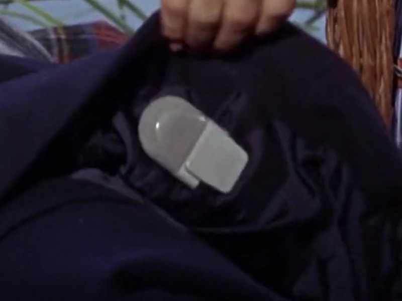 Purse Transmitter - A radio transmitter disguised as a purse. The device's antenna is retractable and extends from the purse when in use. Standard CIA field equipment belonging to Dr. Goodhead.