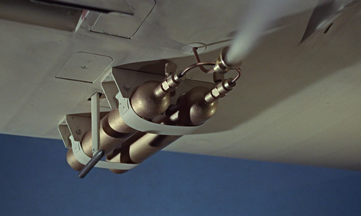 Miniature Rebreather - A miniature rebreather which can provide an emergency air supply for approximately four minutes. The device is carried in a convenient pocket-sized cylinder when not in use. Bond uses the device to escape from Largo's shark pool and during the underwater finale.
