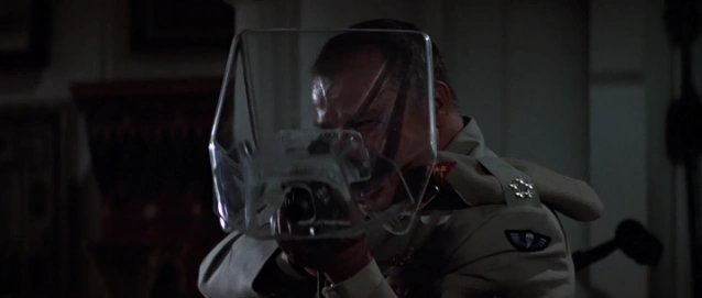 Brad Whitaker (Joe Don Baker) wielding a Colt Commando M733 with armored plexiglass attached.