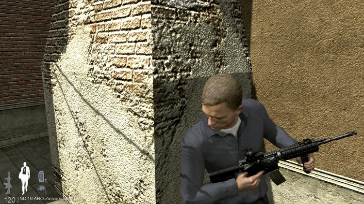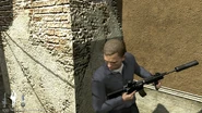 Strangely, in the campaign, after inserting a new magazine, Bond feels inclined to rack the charging handle on the M4A1; in real life, when reloading, he could just release the catch with the push of a button instead of racking the charging handle, which during a magazine change is disengaged, due to the gun being automatically cocked. This gun is used in the levels Bolivia, Airport and Venice.