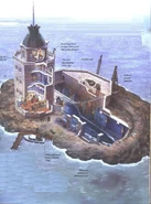 James Bond and Christmas Jones learned that M was being held captive here after the latter utilized a recovered locator card from the stolen nuclear warhead to inform them of her location. They were then taken captive and held at the tower by Elektra after her attempt to kill Valentin Zukovsky who had been aiding their efforts. Elektra put Dr. Jones in Renard's custody while she slowly strangled Bond to death in a Antique Torture Chair. Zukovsky however reemerges and launches his own assault on the tower, killing most of Elektra's men before confronting her in person. She kills him with a concealed gun, but not before Zukovsky used his Walking Stick Rifle to free Bond from his restraints, who then frees M and confronts Elektra atop the tower to demand she call off the attack. Elektra defies him and is then executed by Bond, who goes to pursue Renard as the submarine begins its descent. The city is spared and M is eventually rescued by the authorities.