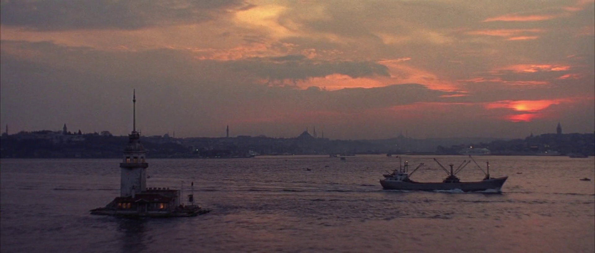 Maiden's Tower (Turkish: Kız Kulesi), also known as Leander's Tower (Tower of Leandros) since the medieval Byzantine period, is a tower lying on a small islet located at the southern entrance of the Bosphorus strait 200m (220 yd) from the coast of Üsküdar in Istanbul, Turkey. The tower was featured in the 1999 James Bond film The World Is Not Enough, where it served as the villains' primary base of operations. It was also visible in the background of From Russia with Love (1963).