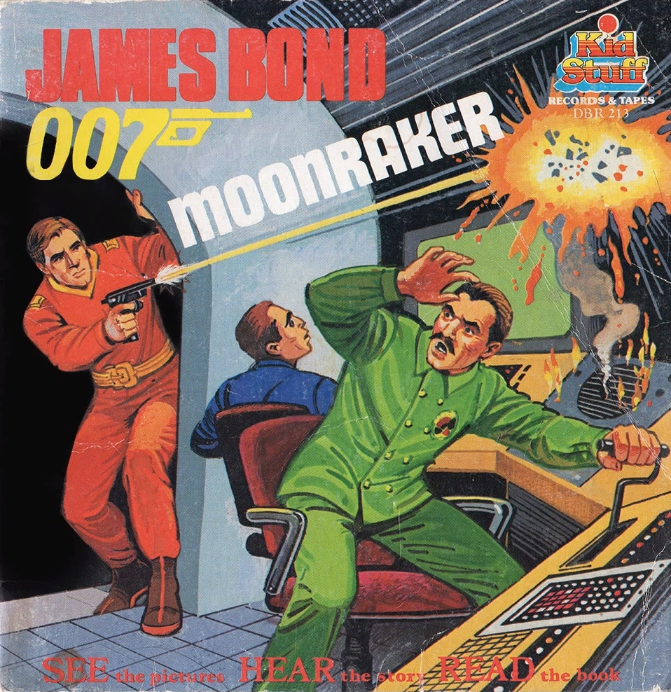 James Bond 007 Moonraker is one of four "James Bond 007 Deluxe Talking Storybooks" published in North America in 1985 by Kid Stuff Records & Tapes, under license from Danjaq and Glidrose Publications. Its plot is essentially a re-imagining of the final act of the 1979 film of the same name. The paperback book and its accompanying cassette tape was written and produced by John Braden.