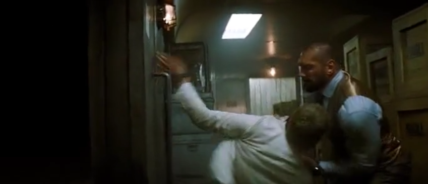 Hinx would intercept James Bond and Madeleine Swann on a train crossing North Africa. He ambushed the pair as they were having their dinner, knocking Swann unconscious with a backhanded-blow while fighting against Bond. Hinx and Bond brawled through the carriages, with 007 attempting, unsuccessfully, to defeat the hulking assassin by attacking him with a knife, a tray, a crate and a wine bottle. Eventually Hinx's sheer strength overpowered Bond and he prepared to throw him out off the train. Bond was saved by Swann, who shot Hinx in the shoulder. However, her pistol clicked empty and Hinx started to strangle her. Just in time, Bond rescued her, attaching Hinx to a series of heavy barrels by a long chain wrapped around his neck. One by one, the barrels fell out of the train, and with just enough time to realize his fate, Hinx let out one final curse before being yanked out of the speeding train by the final barrel.