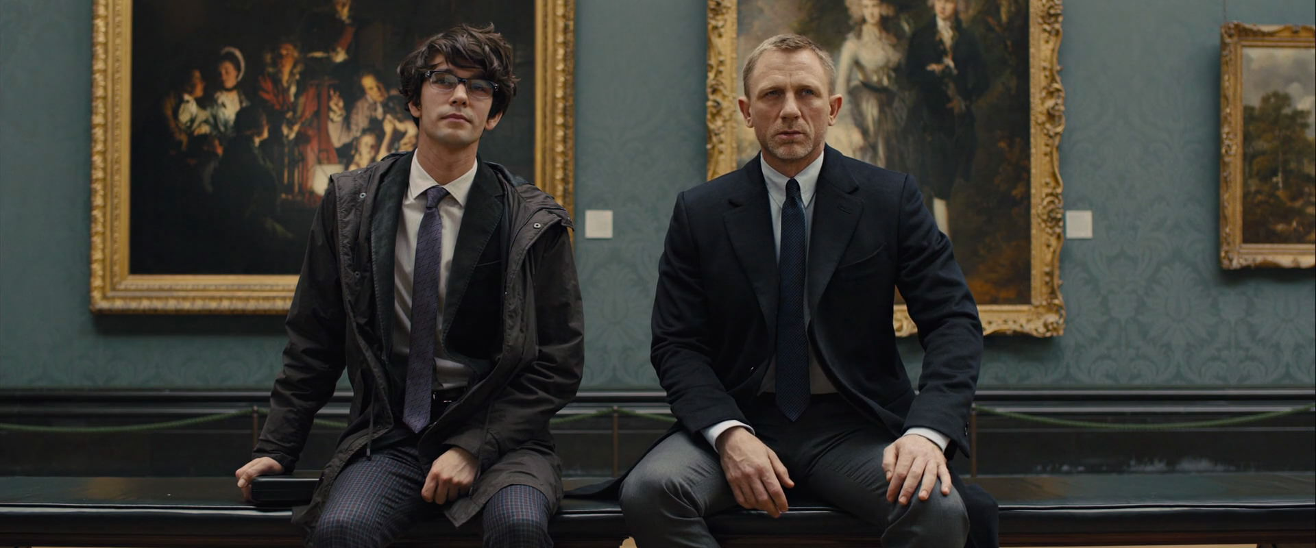The Quartermaster first meets 007 at the National Gallery in London under M's orders since the Q Branch hasn't finished setting up. While waiting, the young Q sits down beside Bond and engages him in polite conversation about the painting he appears to be studying - The Fighting Temeraire by English artist J. M. W. Turner. Asked what he sees in the painting, Bond dismissively replies "a bloody big ship." As 007 attempts to excuse himself, the man reveals that he is the new Quartermaster, much to Bond's amusement.